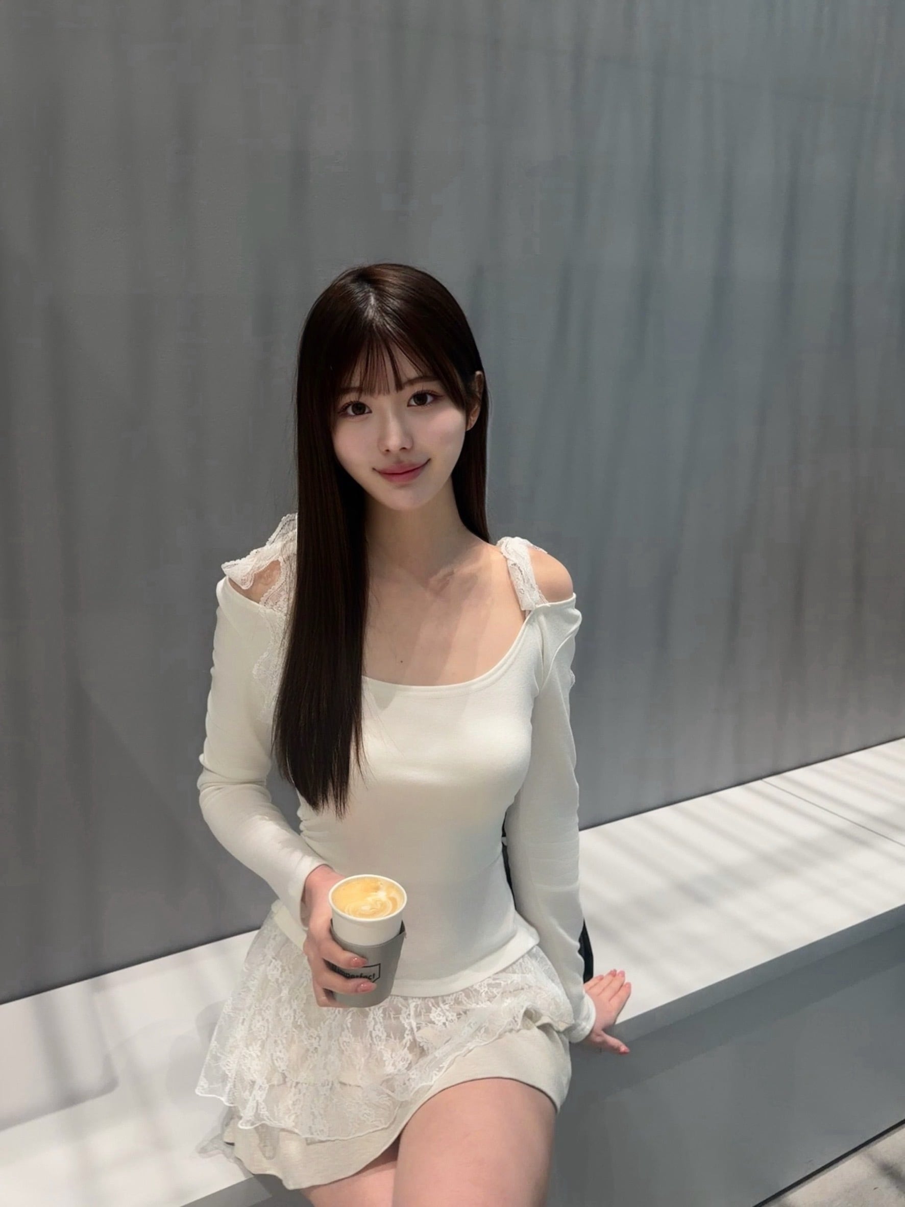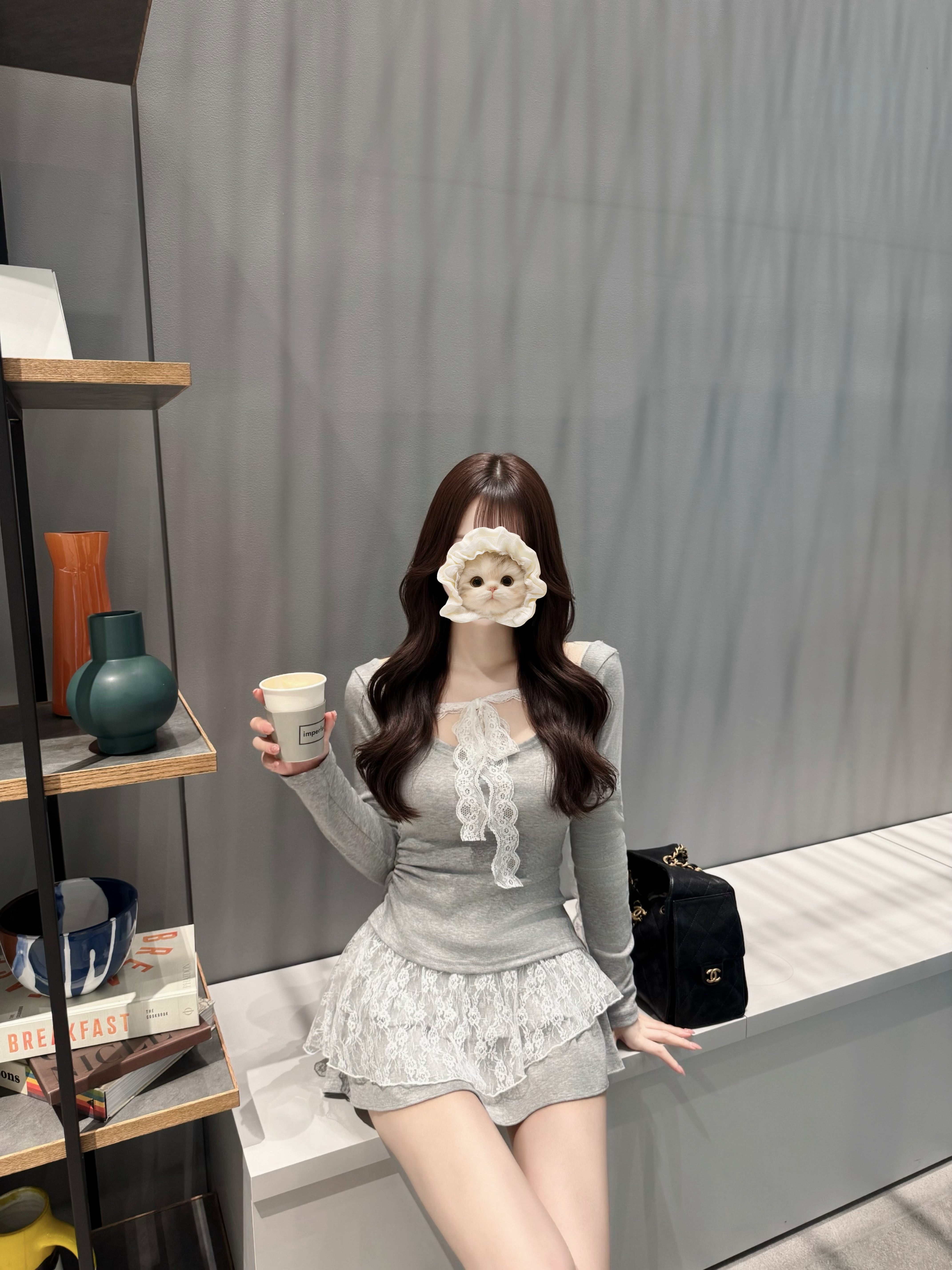 胸元のレースリボンが女性らしさをプラス。