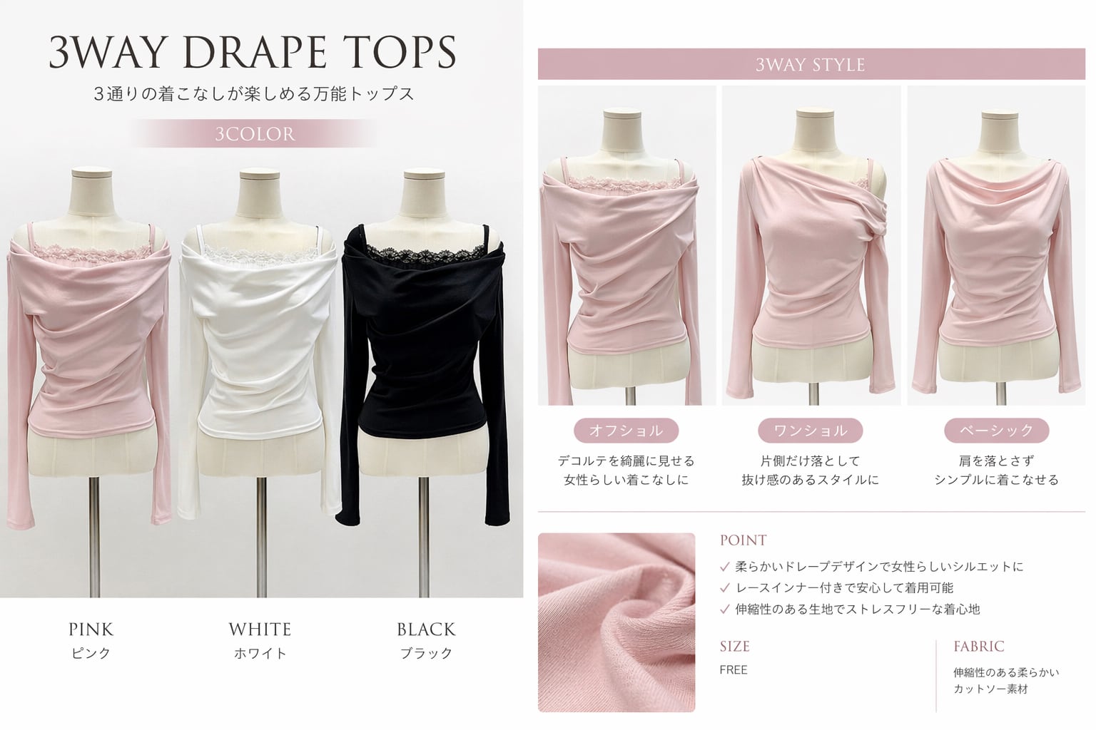 デコルテを美しく見せ、自然な華奢見えを叶えます。