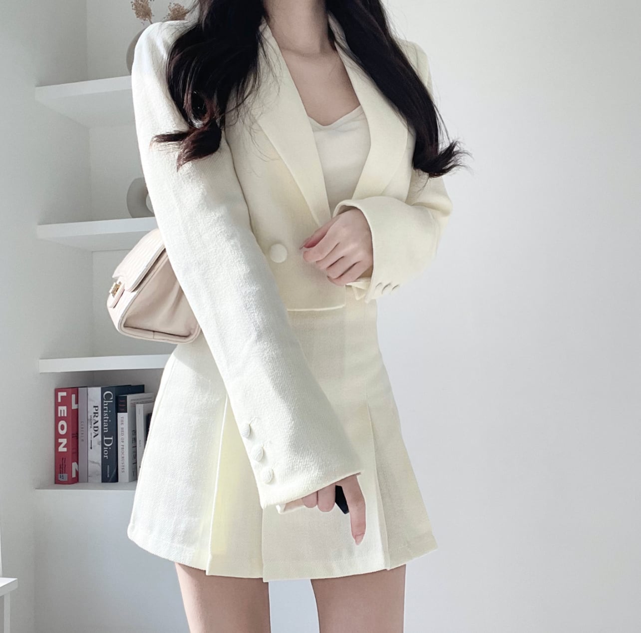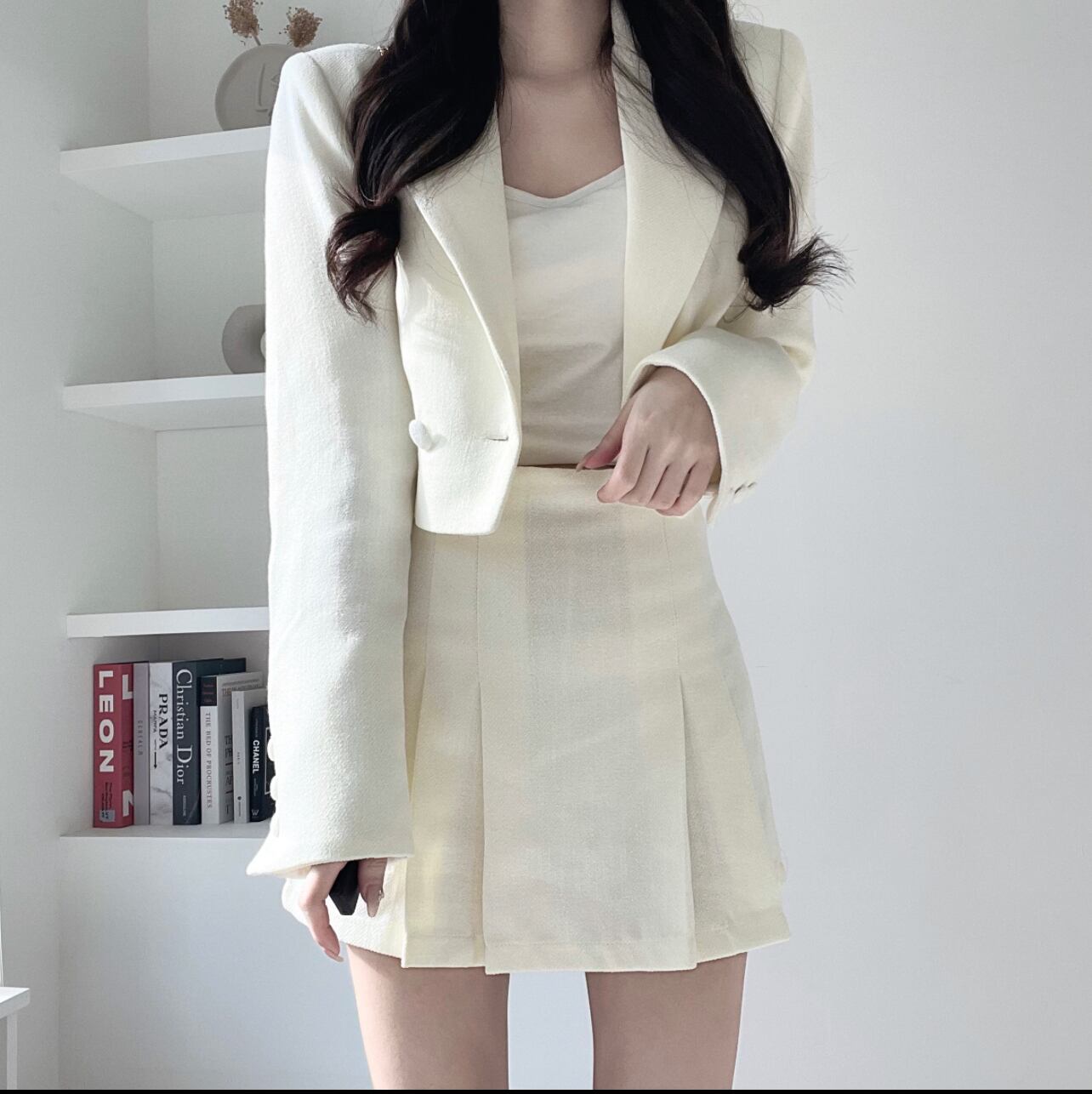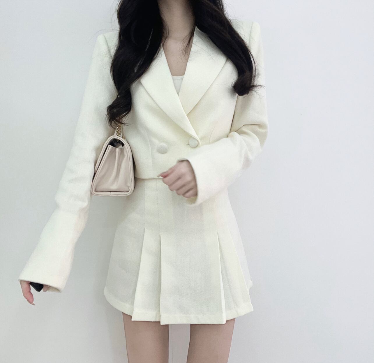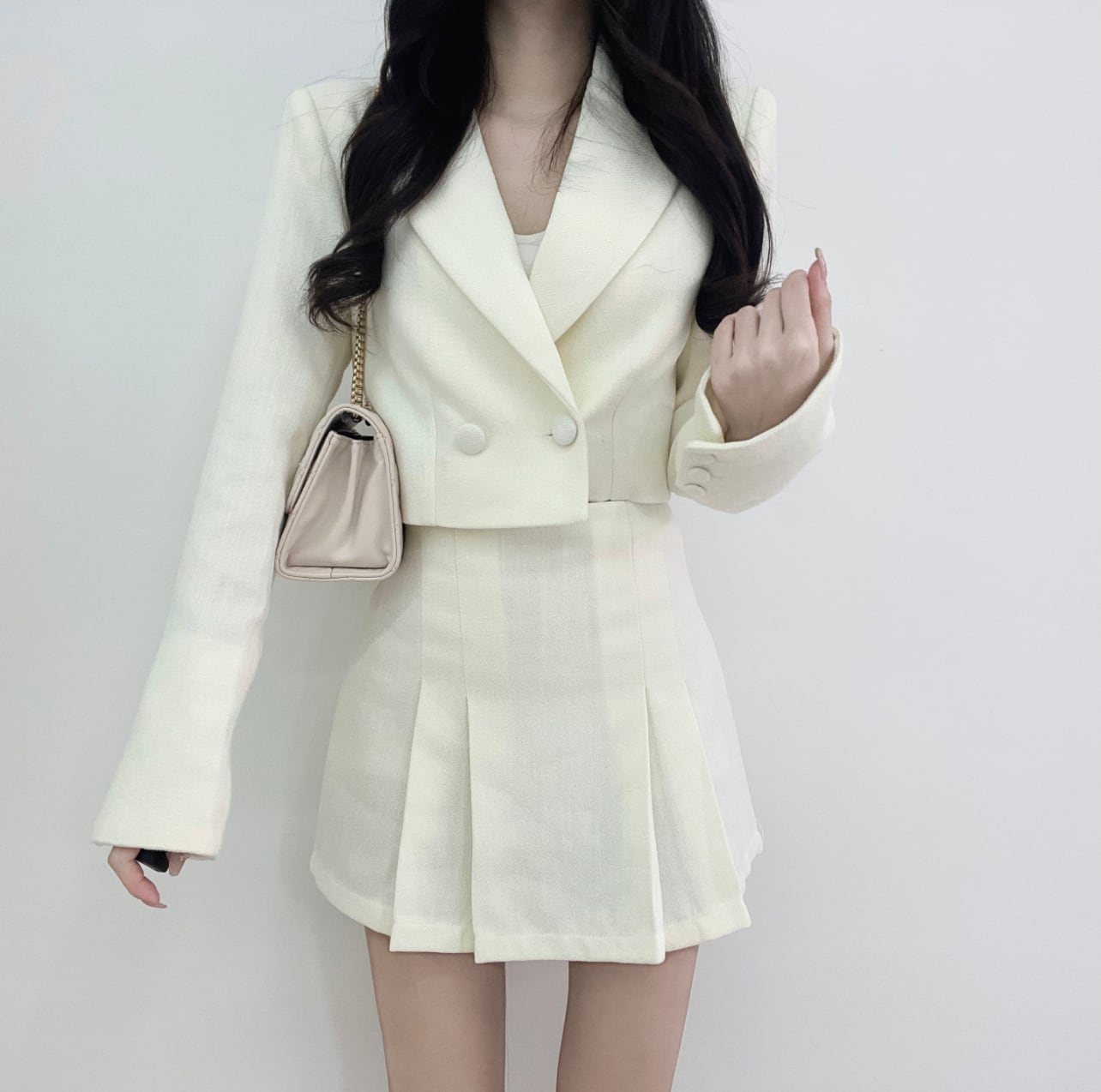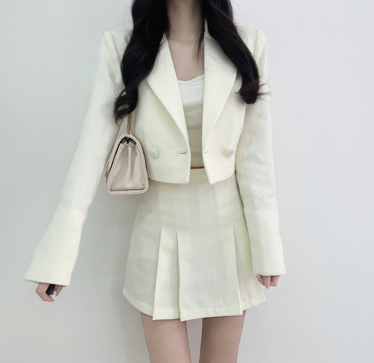 クロップドジャケット+タイトスカート