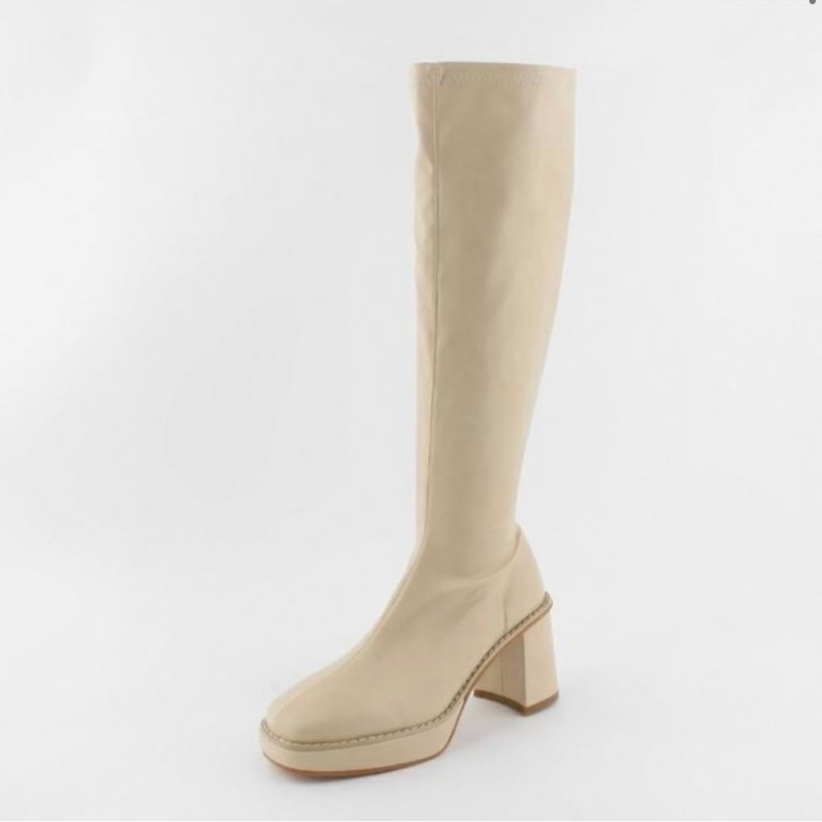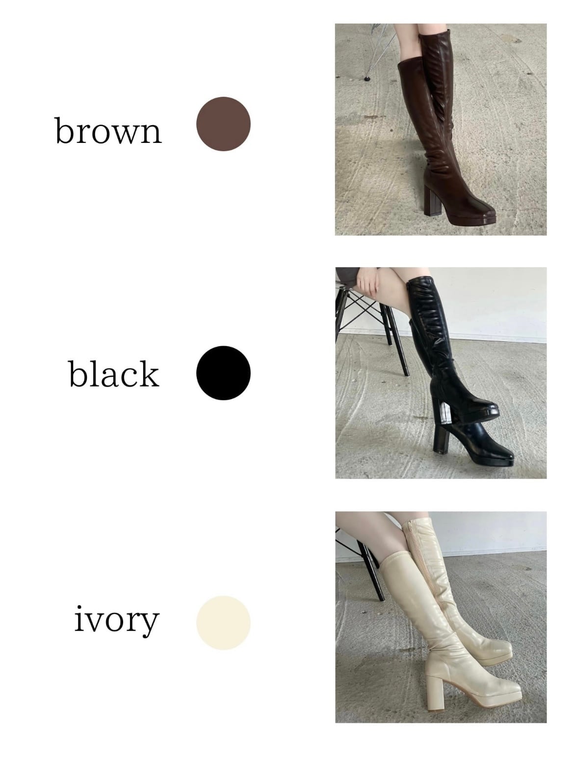 ヒール高さ:7.5-8cm、ブーツ全長:49cm、足首断面長:22cm、入口断面長:33-34cm