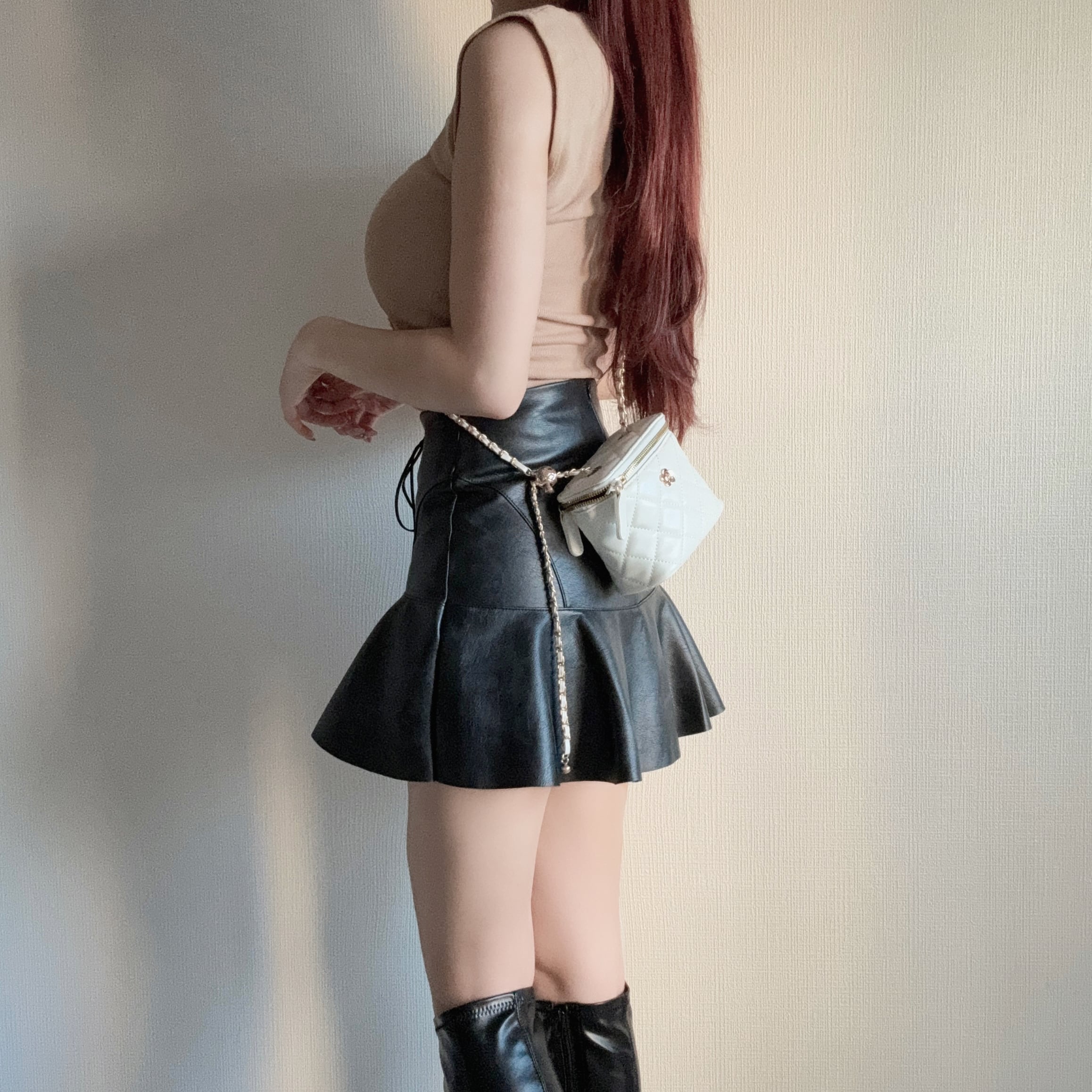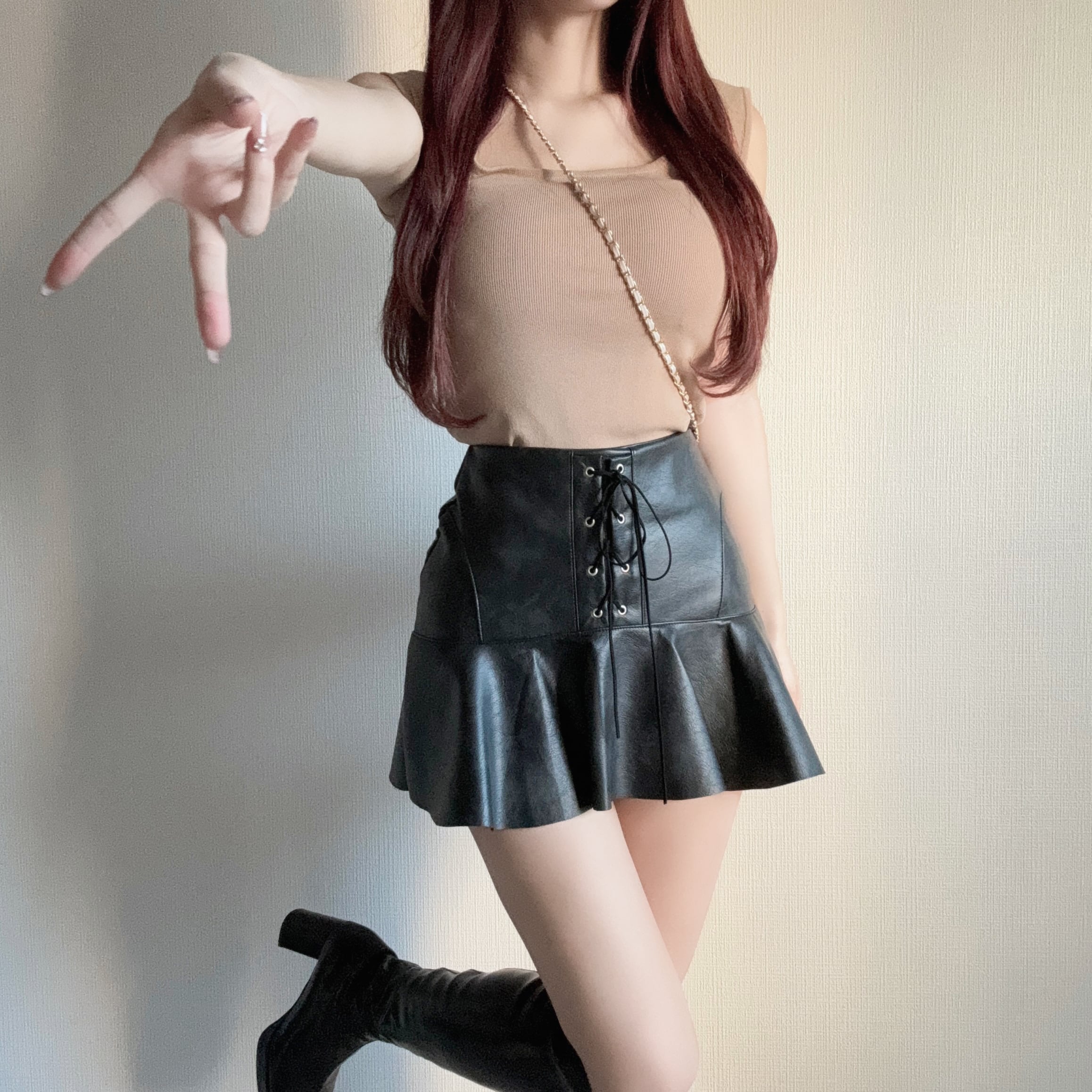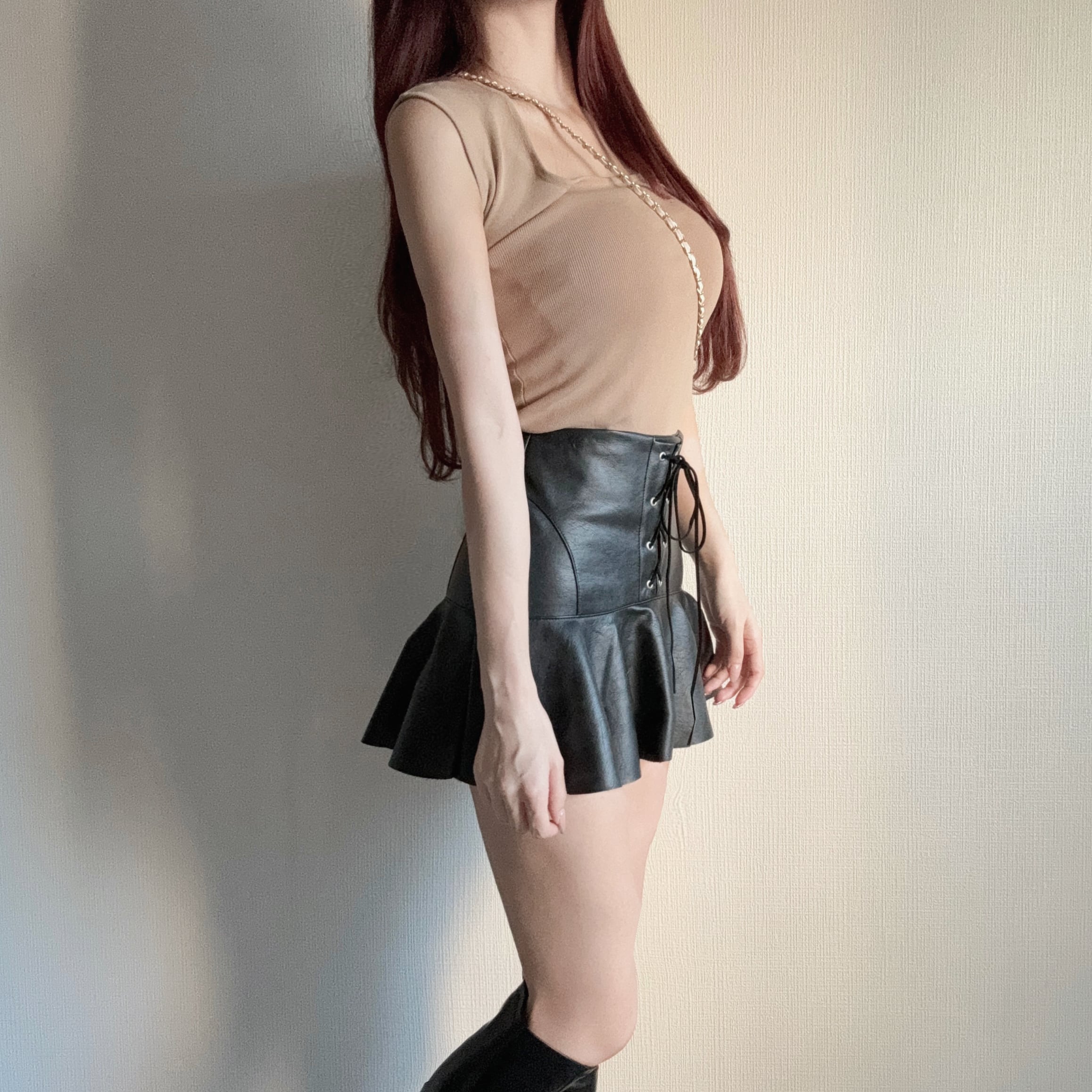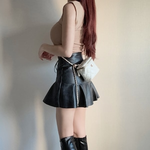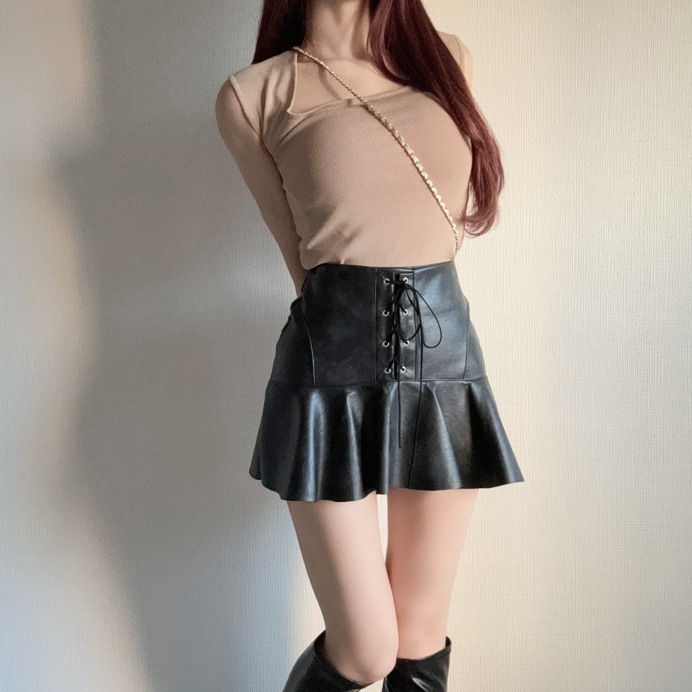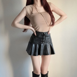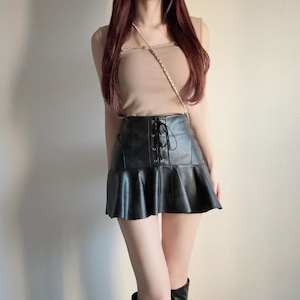 レースアップフリルレザースカート