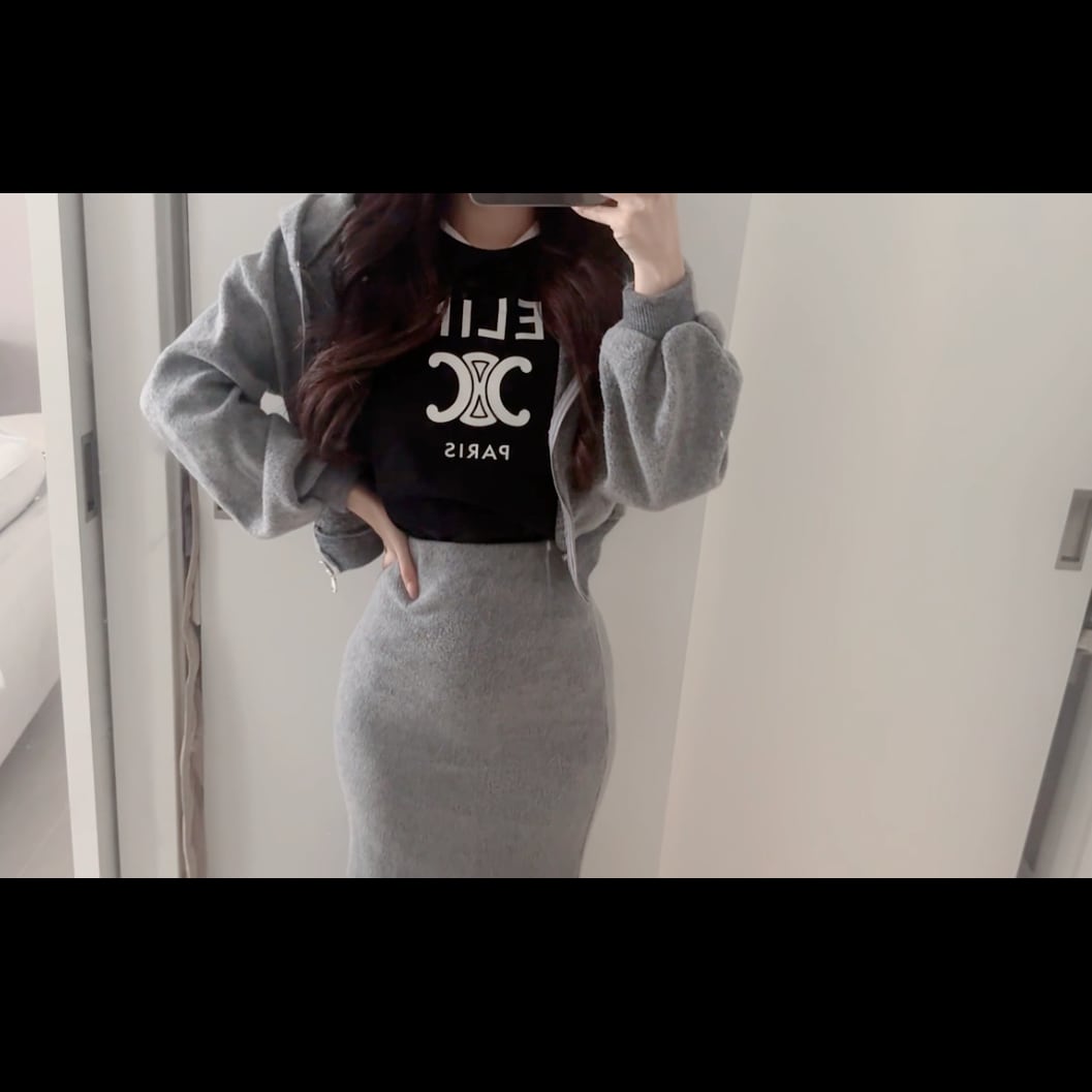【即納商品】起毛クロップドパーカー&マーメイドスカートセットアップ