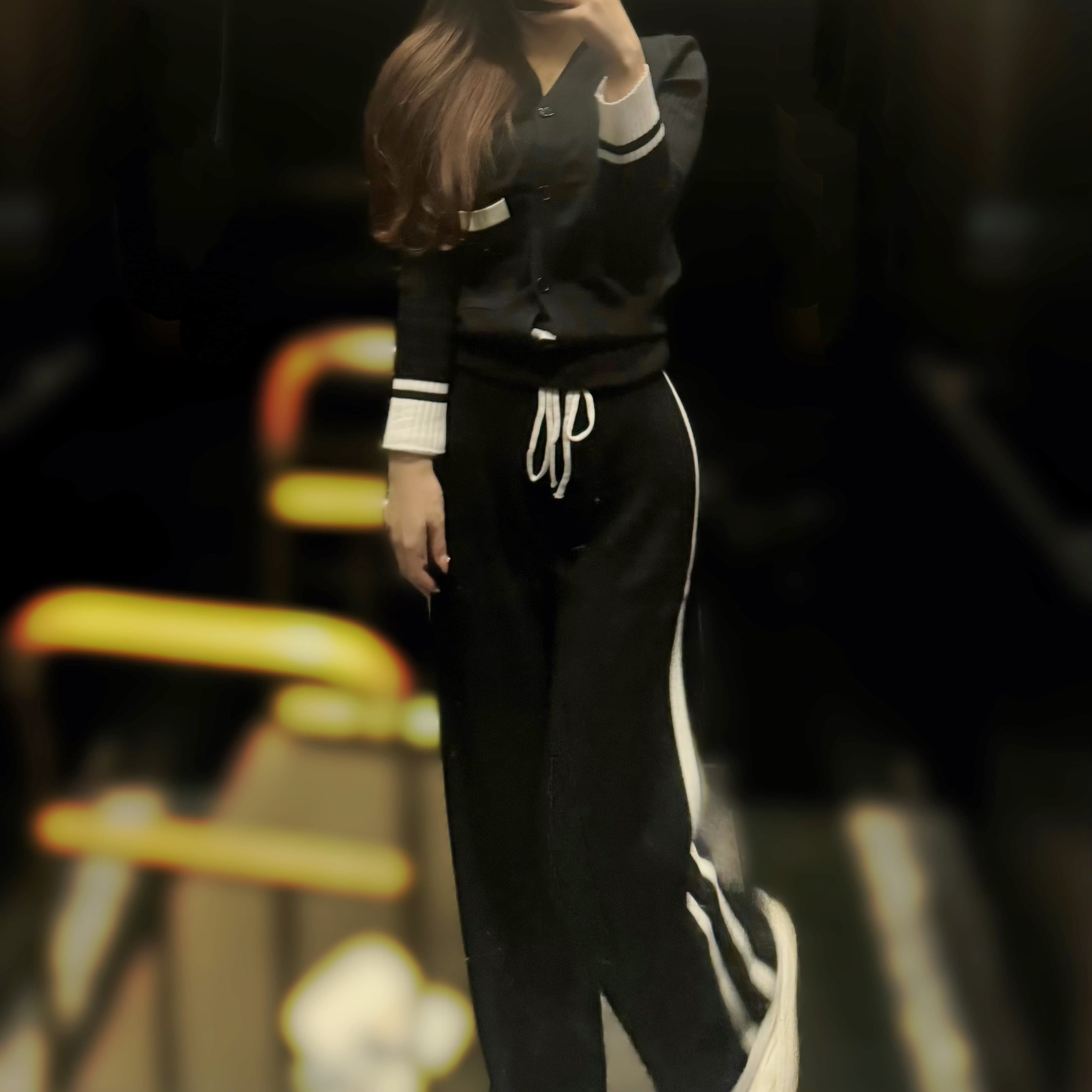 Vネックカーディガンスラックスセットアップ【ブラック】